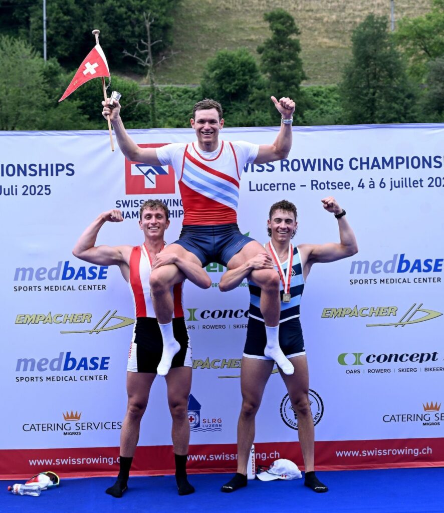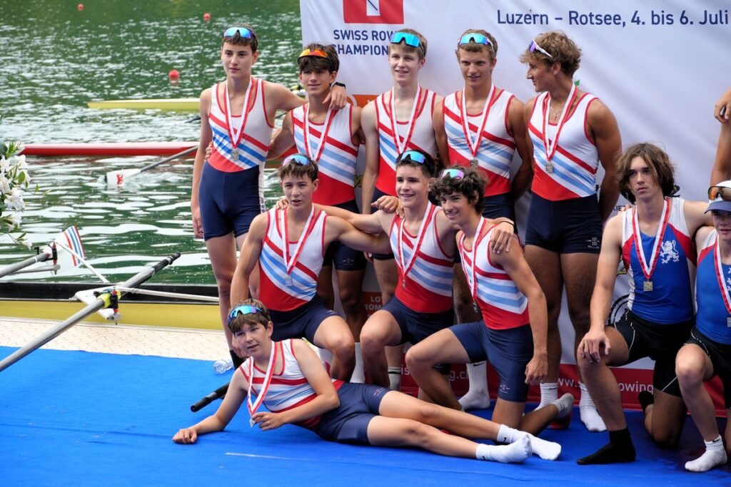 Der U17-Achter lieferte ein packendes Rennen und wurde Vizeschweizermeister. Diese Silbermedaille ist Resultat von diszipliniertem Training und einer Gruppe, die über die Saison stark zusammengewachsen ist. Ein wahres Highlight des Wochenendes. Im Doppelvierer holten Lucian, Robin, Filip und Merlin Bronze, ein zweites Luzerner Boot erreichte Rang sechs. Auch im Einer gab es Grund zur Freude: Rocco Blattner kämpfte sich mit einem starken Endspurt auf den 3. Rang.
