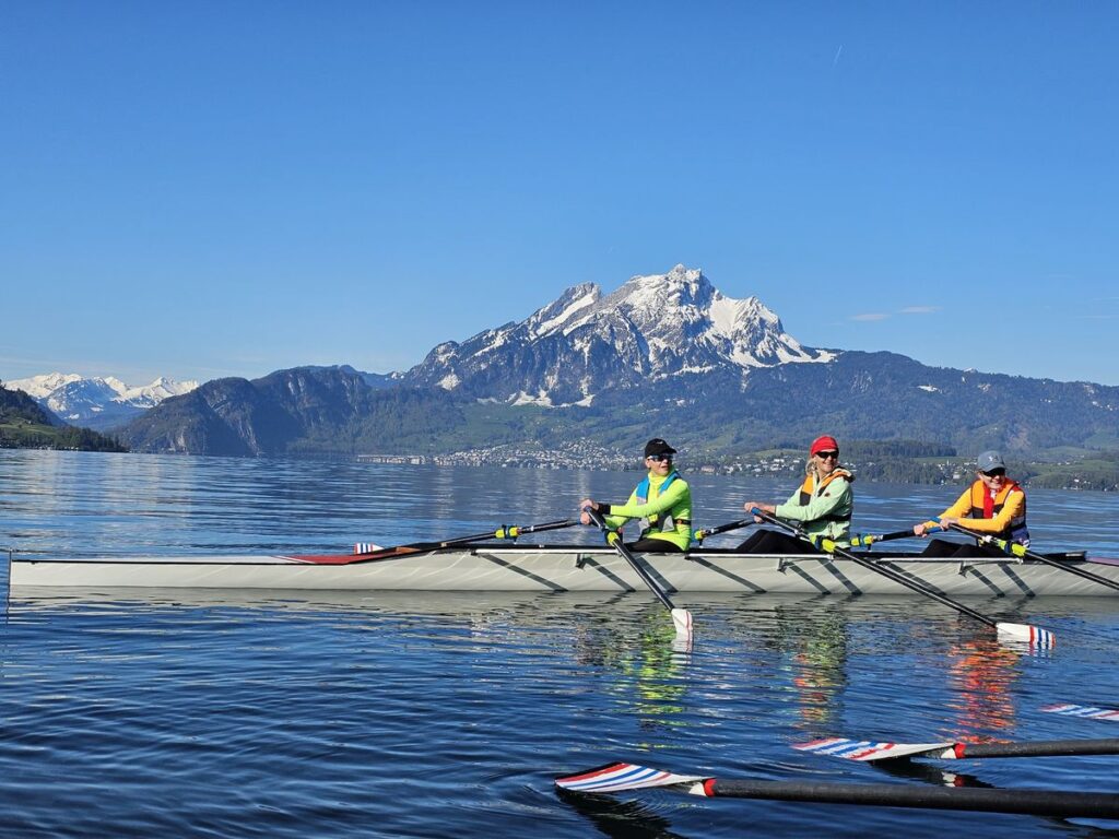 Morgenstund hat Gold im Mund, so heisst es. Deshalb versammeln wir uns in freudiger Erwartung und mit grossem „Hallooo“ am Samstagfrüh um 6:30 Uhr am Bootshaus. Farbenfroh sehen wir acht Mädels mit unseren bunten Leibchen und leuchtenden Schwimmwesten aus. Unsere Ruderfahrt ins Blaue soll uns heute über St. Niklausen nach Kehrsiten-Dorf, vorbei am Obermatt über Weggis und Meggen zurück nach Luzern bringen. Beinahe 26 km. Deshalb sind wir nebst Riegeln, Dörrobst und allerbester Laune gewappnet mit den verschiedensten Pipi-Behältern – für den Fall der Fälle…